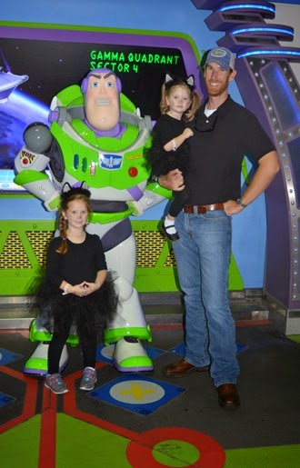 The girls dressed up as kitty cats. (Mamie’s choice, since it was her day). We met a few villians (& Buzz)…